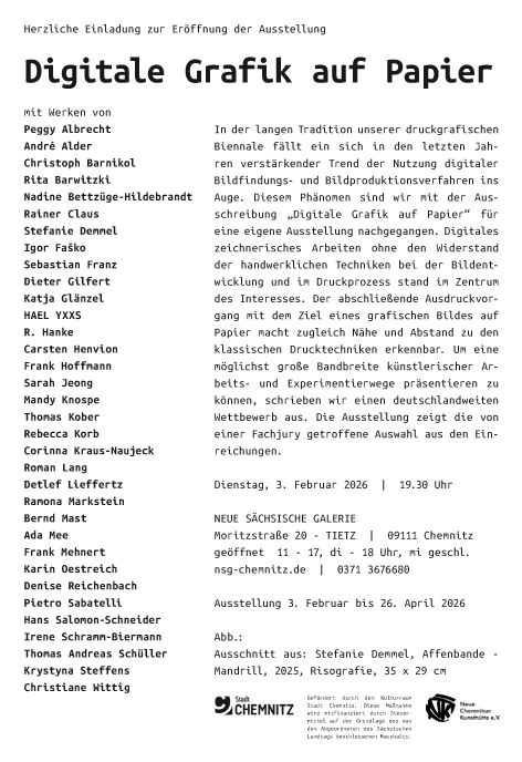 Laufzeit: 8.12.2025 bis 25.1.2026 (Finissage 12 Uhr)